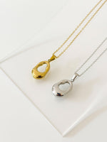 A sleek teardrop-shaped pendant with an organic silhouette, symbolizing calm and fluidity. Its polished stainless steel surface adds a touch of understated elegance.