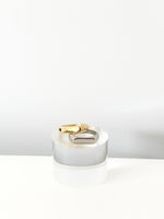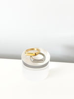 Bold and sculptural, featuring dual oval tops in contrasting tones.
